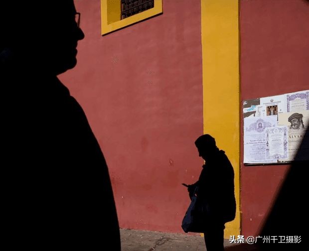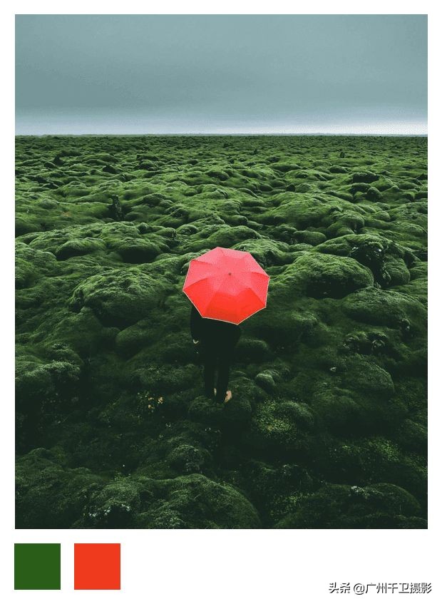 这张照片里,由于对比的原因,这把小红伞一下就跳出来了,观众的视线也都被引向了小红伞,好奇着伞下的人正在干什么。